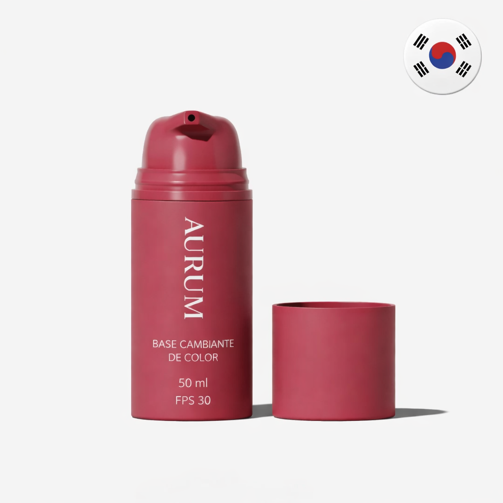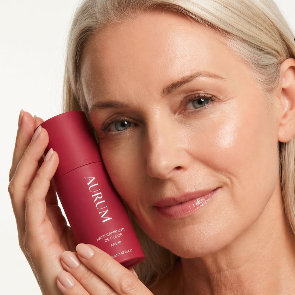 La tecnología de Aurum Lab trabaja diferente. Utiliza pigmentos micro-encapsulados. Al contacto con la temperatura corporal y el pH natural de cada piel, esas cápsulas se abren de forma controlada y liberan los pigmentos de manera proporcional al tono y subtono exacto de la persona.